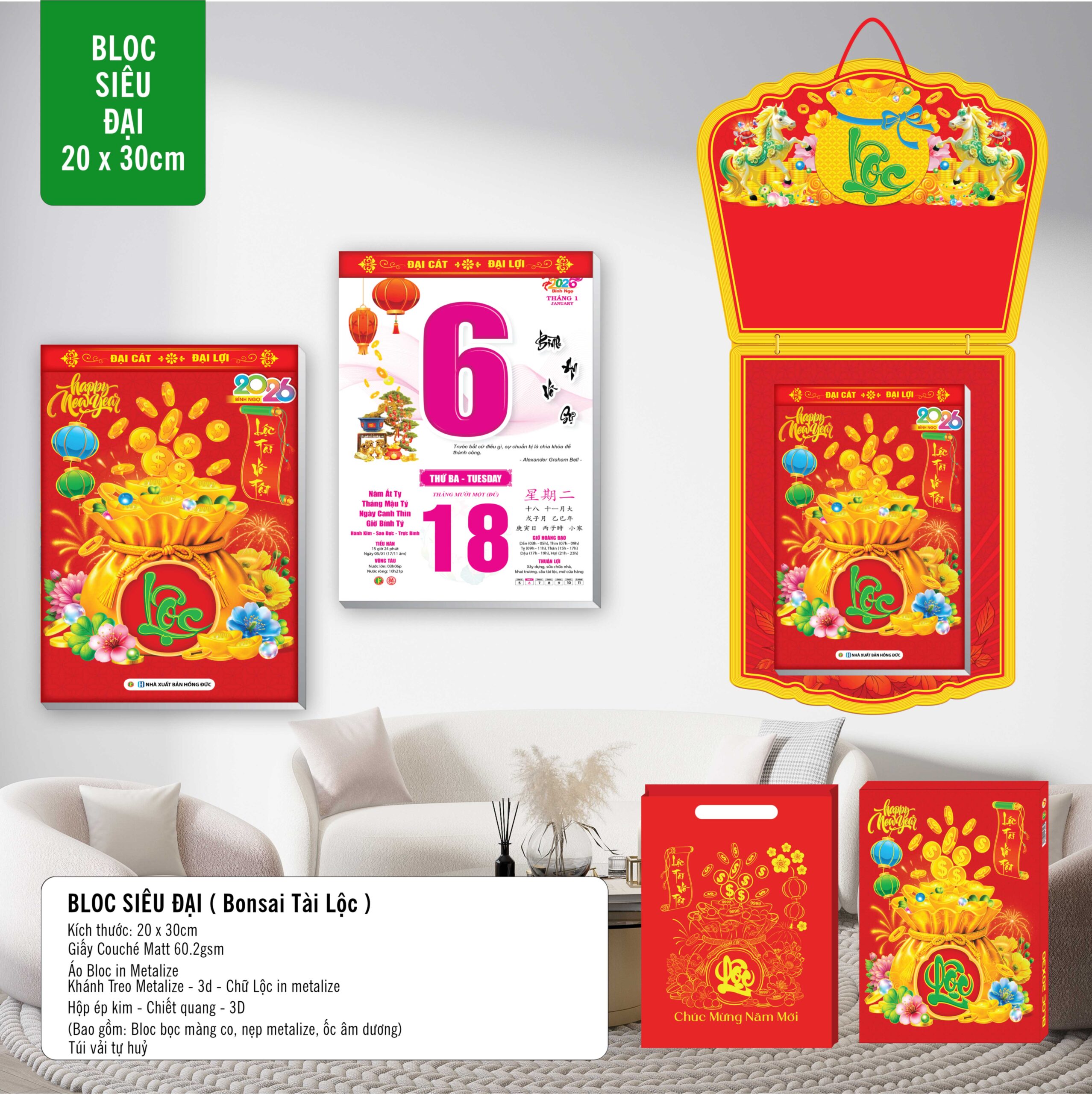 Lịch bloc 2026 Bonsai tài lộc siêu đại (20x30cm)