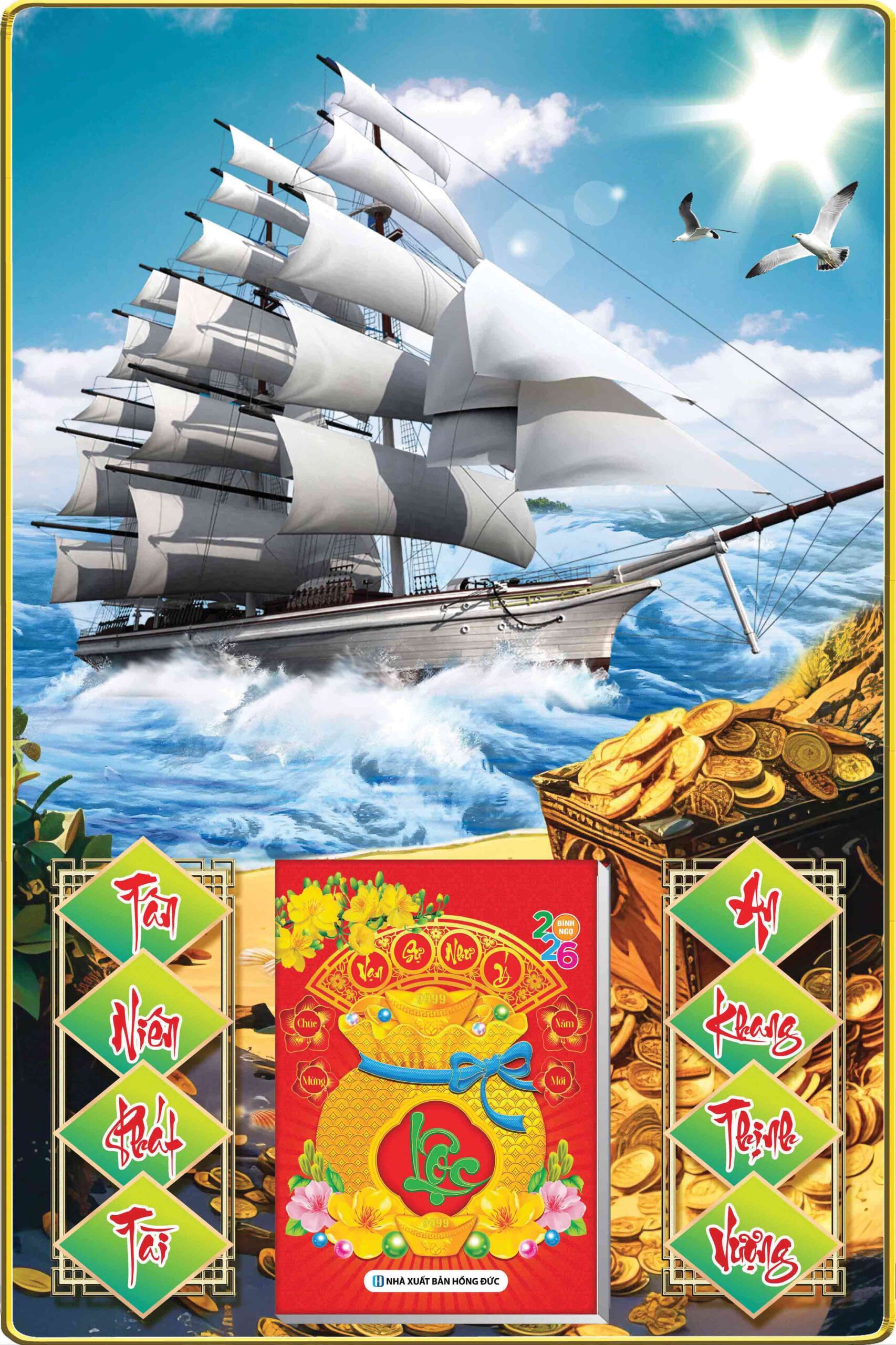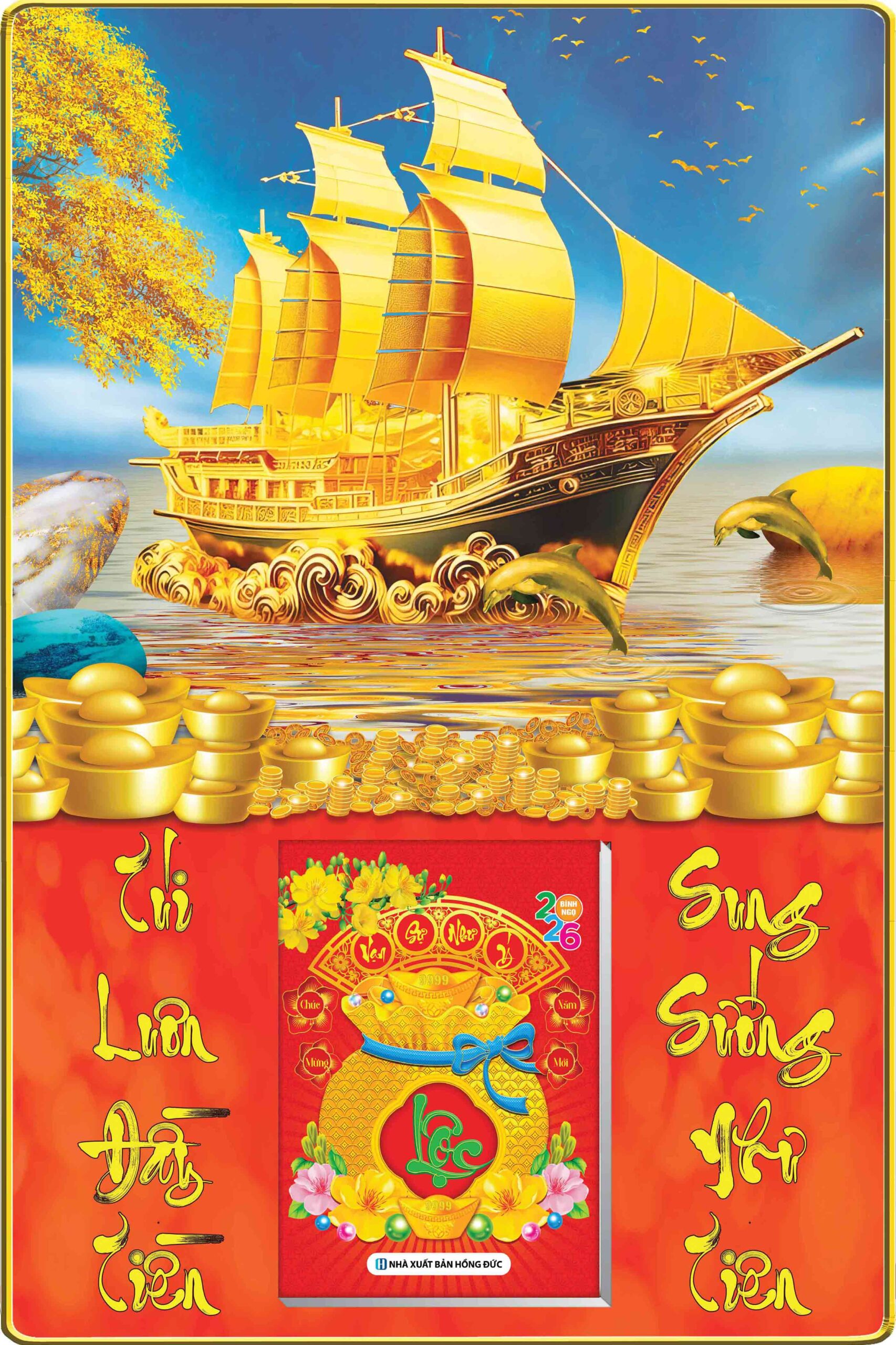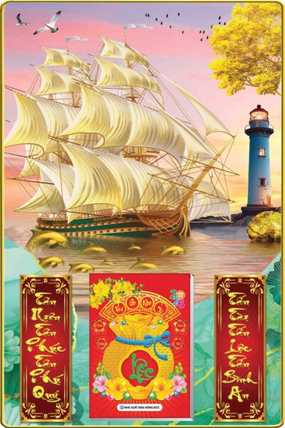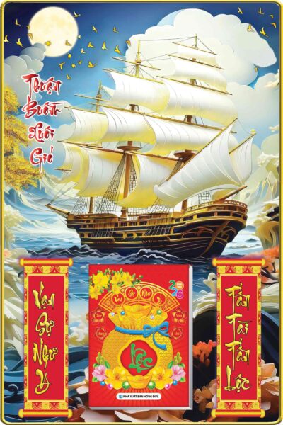 Lịch gỗ laminate 2026 Thuận Buồm Xuôi Gió 40x60cm gắn bloc 14.5×20.5cm bọc viền